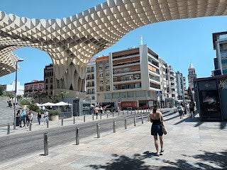 Vandaag een e-bike tour door Sevilla op het programma met een gids . Een absolute aanrader bleek achteraf temeer dat de "groep" zich beperkte tot één persoon zijnde mezelf. Zonnecème factor 50 voorzien en een petje, geen overbodige luxe bij temperaturen die vlot de 35° halen.